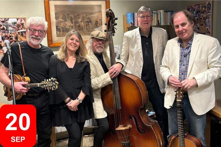 - Jeremy Cozens – Mandolin, Guitar & tenor vocals has played for a many years and was inspired into bluegrass after a visit to the ‘Cambridge Folk Festival’ where he may have crossed paths with David! He adds rhythmic mandolin and clear tenor harmony.